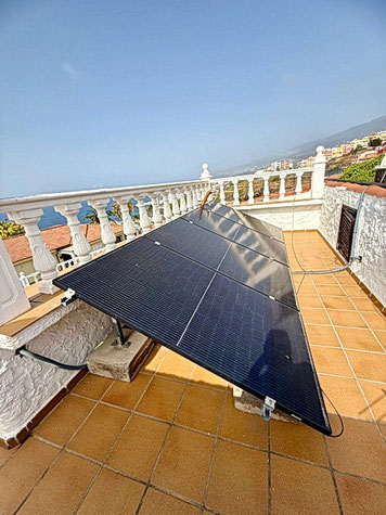 Treppe vom Pool hoch zum kleinen Balkon mit Solarplatten,