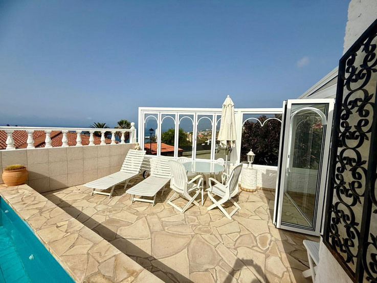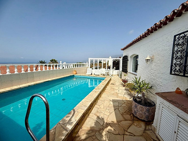 Das Eckhaus mit Pool zum Kauf oder zur Miete liegt sehr ruhig in einer Sackgasse im grünen Norden auf Teneriffa.