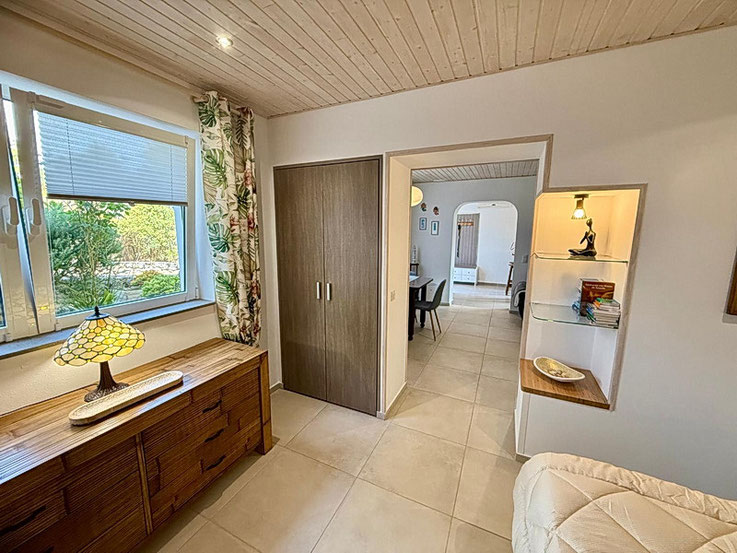 Wem trotz Kleiderschrank und Kommode noch Stauraum fehlt ist es kein Problem zb noch einen Schrank neben das Bett zu stellen.