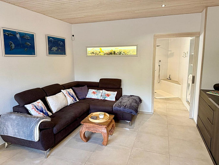 Gemütliche Couch über Eck die man auch mal als Schlafsofa nutzen kann.