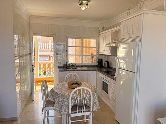 Die offene Küche mit Ausgang auf den 1.Balkon zur Südseite gelegen.