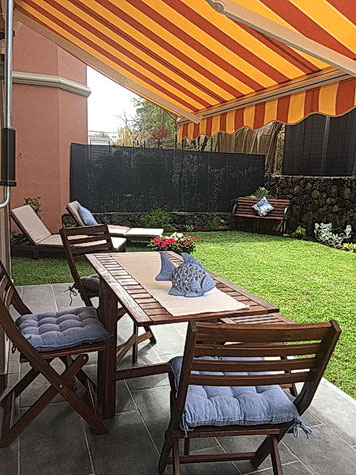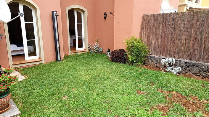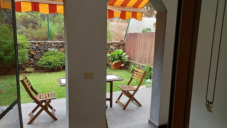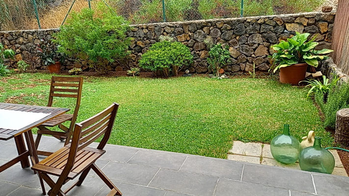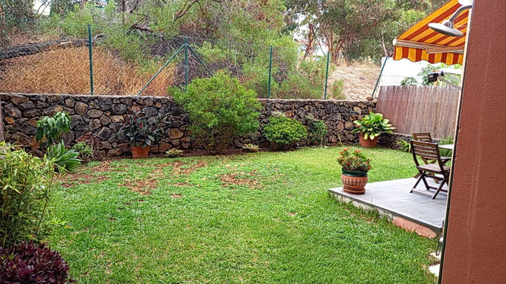 Die Terrasse mit Gartenteil .