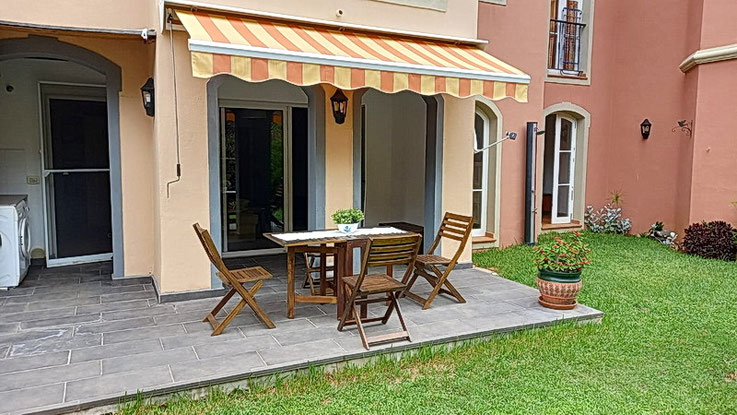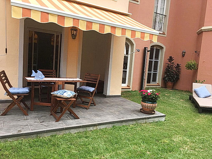 Die Eigentumswohnung liegt in der unteren Etage einer sehr schönen und ruhigen Wohnanlage mit einem großen Gemeinschaftspool und Liegeterrassen .